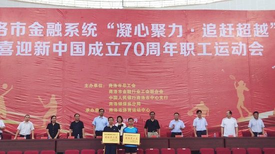 7月22日至26日,由商洛市金融行业工会联合会主办的商洛市金融系统“凝心聚力 追赶超越”喜迎新中国成立70周年职工运动会在商洛市体育馆举行。来自全市金融系统的16家金融机构参加了比较角逐。中国银行商洛分行派出36名运动员组成代表团,参加篮球、羽毛球、乒乓球、拔河、趣味竞赛等五个大项八个小项,喜获团体第二名的佳绩。