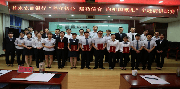 2019年9月11日,在国庆70周年即将来临之际,柞水农商银行成功举办“坚守初心、 建功信合、向祖国献礼”主题演讲比赛。农商行党委书记、董事长李家炎及其他班子成员出席了活动。各部室及网点50余人观看了比赛。