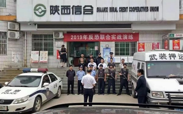 这里进行着的是商南农商银行清油河支行“2019年反恐联合实战”应急预案演练。旨在营造国庆70周年期间安全稳定农村金融服务环境,为百姓提供优质文明金融服务。