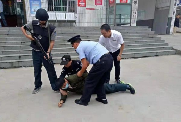 9月14日10时许,商南农商银行运钞押运车组在清油河支行执行调款任务时,突遇两名蒙面持械歹徒在营业厅门口对一客户进行抢劫。歹徒疯狂作案,抢劫即将得逞,银行柜员见状,立即拉响警报震慑歹徒,车组长立刻组织人员制止胁持人质和抢劫行为的发生。车组人员多次口头警告歹徒,令其放开人质,停止违法行为,歹徒不听劝阻,继续作案。清油河支行向“110”电话报警。安全员寻机和歹徒周旋,分散其注意力,以防歹徒情绪被激化伤到人质。银行工作人员密切配合武装人员向歹徒靠近,寻找制服歹徒的最佳时机。十多分钟后,清油河镇派出所民警及时赶到,在强大阵势震慑下,经公安民警和在场人员共同努力,成功解救人质制服歹徒。