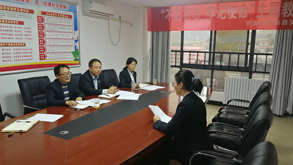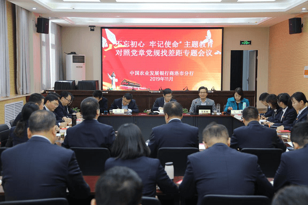 一、理论学习提高度。围绕学习贯彻习近平新时代中国特色社会主义思想这条主题教育主线,制定了主题教育集体学习计划。统一为党员干部购买了《习近平关于“不忘初心、牢记使命”论述摘编》等书籍,为党员干部自主学习创造了必要条件。召开党委中心组理论学习研讨会议5次,及时组织党员干部集中学习十九届四中全会精神,推动理论学习往深里走、往心里走、往实里走。督促支行、机关各部室制定班前班后学习计划,确保每周不少于2次集体学习,推动主题教育学习向业务学习延伸。组织干部职工观看了电视片《时代楷模-张富清》《榜样》,学习榜样精神,汲取榜样力量,传承榜样品格,把楷模的力量转化为支农报国的行动自觉。组织中层以上干部职工参观了商洛市庆祝中华人民共和国成立70周年成就展,唤起党员领导干部的主人翁意识,增强以实际行动润泽乡里的行动自觉。