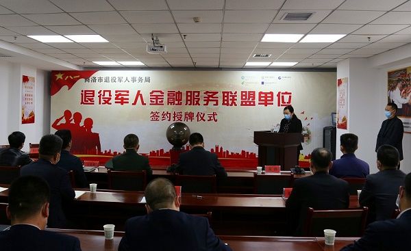 3月26日下午,商洛市退役军人金融服务联盟单位签约授牌仪式在市退役军人事务局举行,市政府李华副市长、商洛军分区陆乐乐副司令、市退役军人事务局王旭光局长,商洛农行、工行、西安银行、邮储银行四家金融机构负责人出席签约仪式。