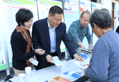 图为:揭牌日,柞水农商行工作人员现场发放宣传资料宣传