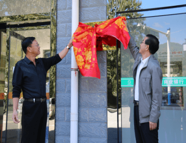 图为:人行商洛中支纪委书记屈志敏、省联社商洛办事处副主任黄勇揭牌。