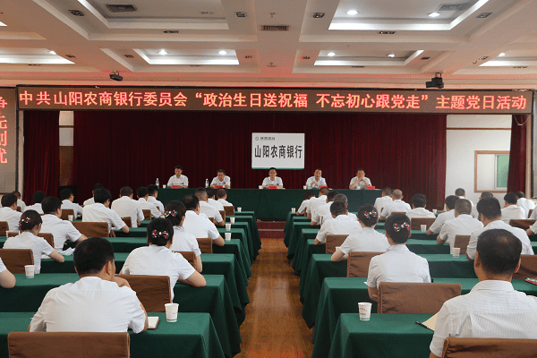 山阳农商行隆重举行庆祝建党99周年表彰大会暨“我的政治生日”主题党日活动。会上,党委书记、董事长刘文新作了题为《忆峥嵘岁月、庆政治生日、做合格党员》专题党课,对涌现出的“信合堡垒.支农先锋”先进党支部及优秀共产党员、服务标兵、最美信合人代表颁发了荣誉证书。并为“七一”过政治生日的党员代表送上了政治生日祝福及政治生日贺卡。